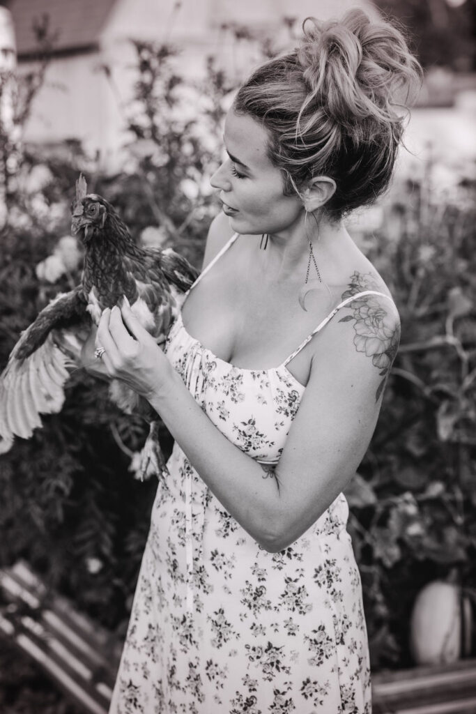 From the start, I wanted this shoot to have a vintage, almost timeless feel. Something that felt warm and a little nostalgic, the way farm life often does. We decided on a simple, flowing dress that would look natural out in the pasture and garden. Danielle pulled her hair into a messy bun, and we embraced the imperfections—because, really, that’s what life on a farm is all about.