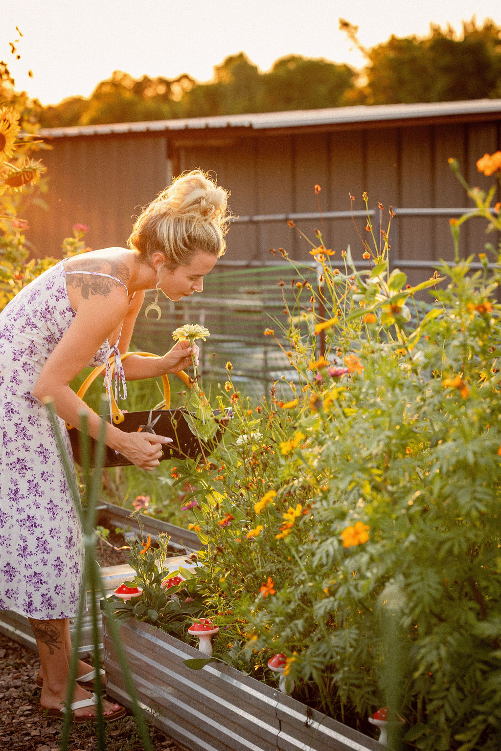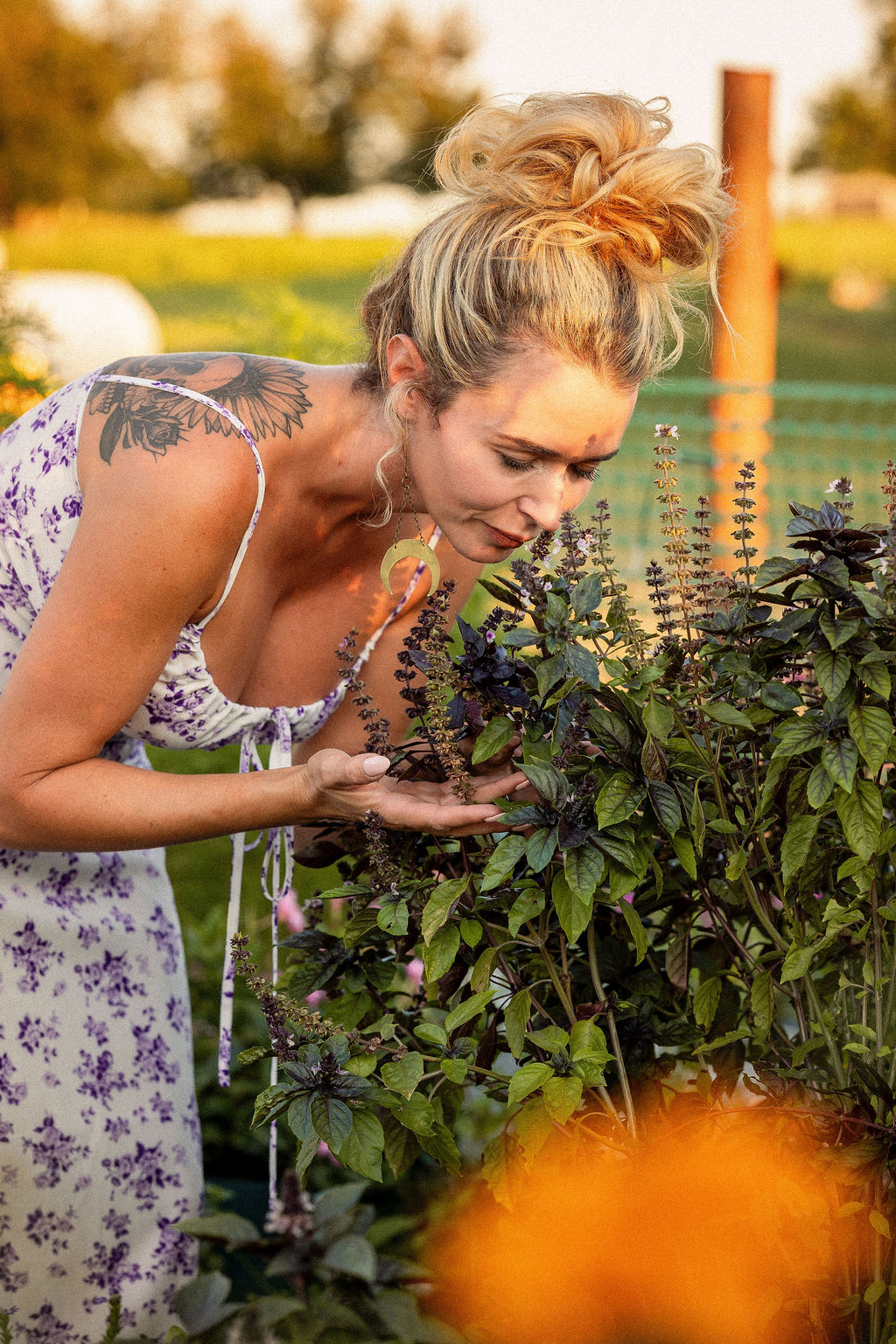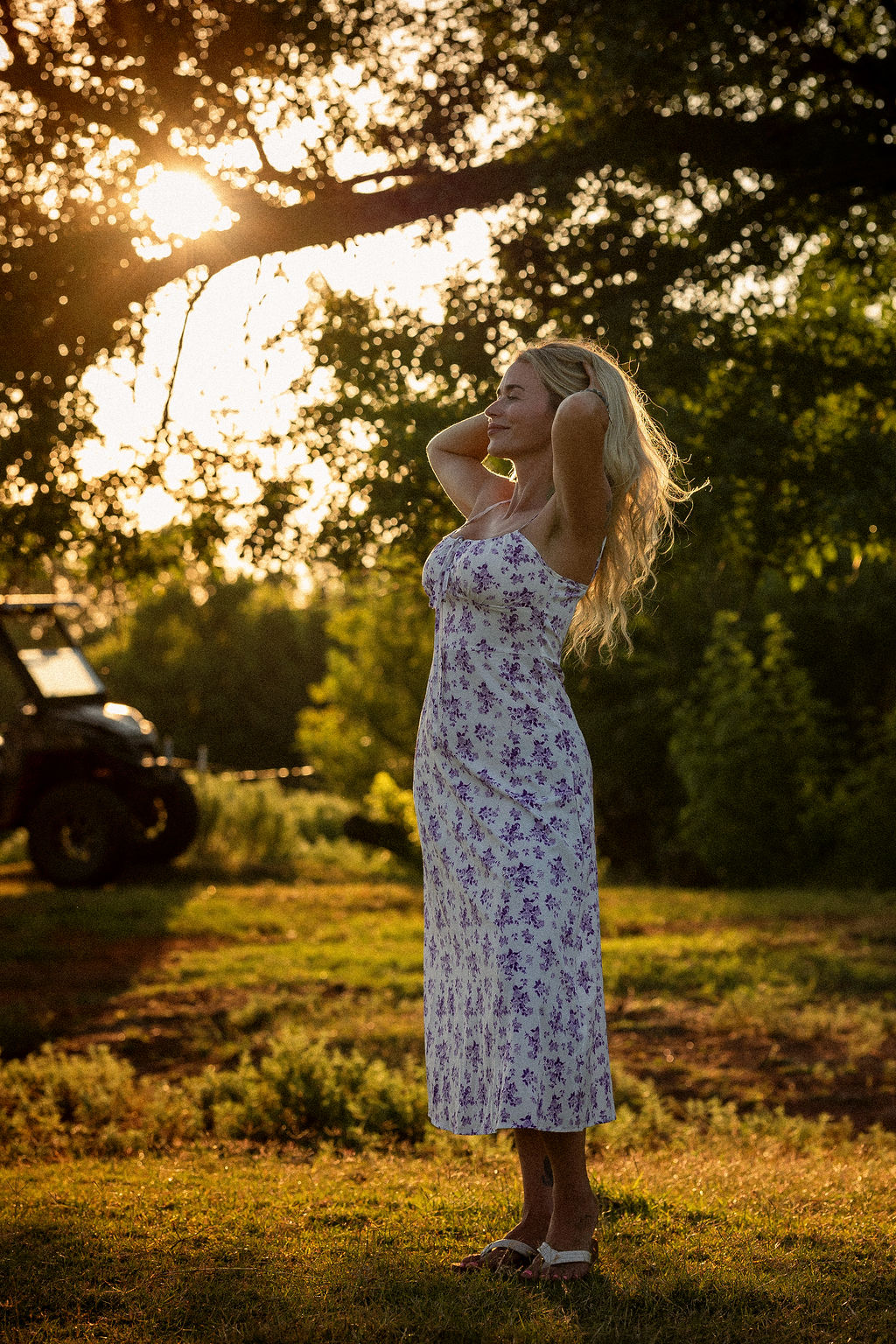 From the start, I wanted this shoot to have a vintage, almost timeless feel. Something that felt warm and a little nostalgic, the way farm life often does. We decided on a simple, flowing dress that would look natural out in the pasture and garden. Danielle pulled her hair into a messy bun, and we embraced the imperfections—because, really, that’s what life on a farm is all about.